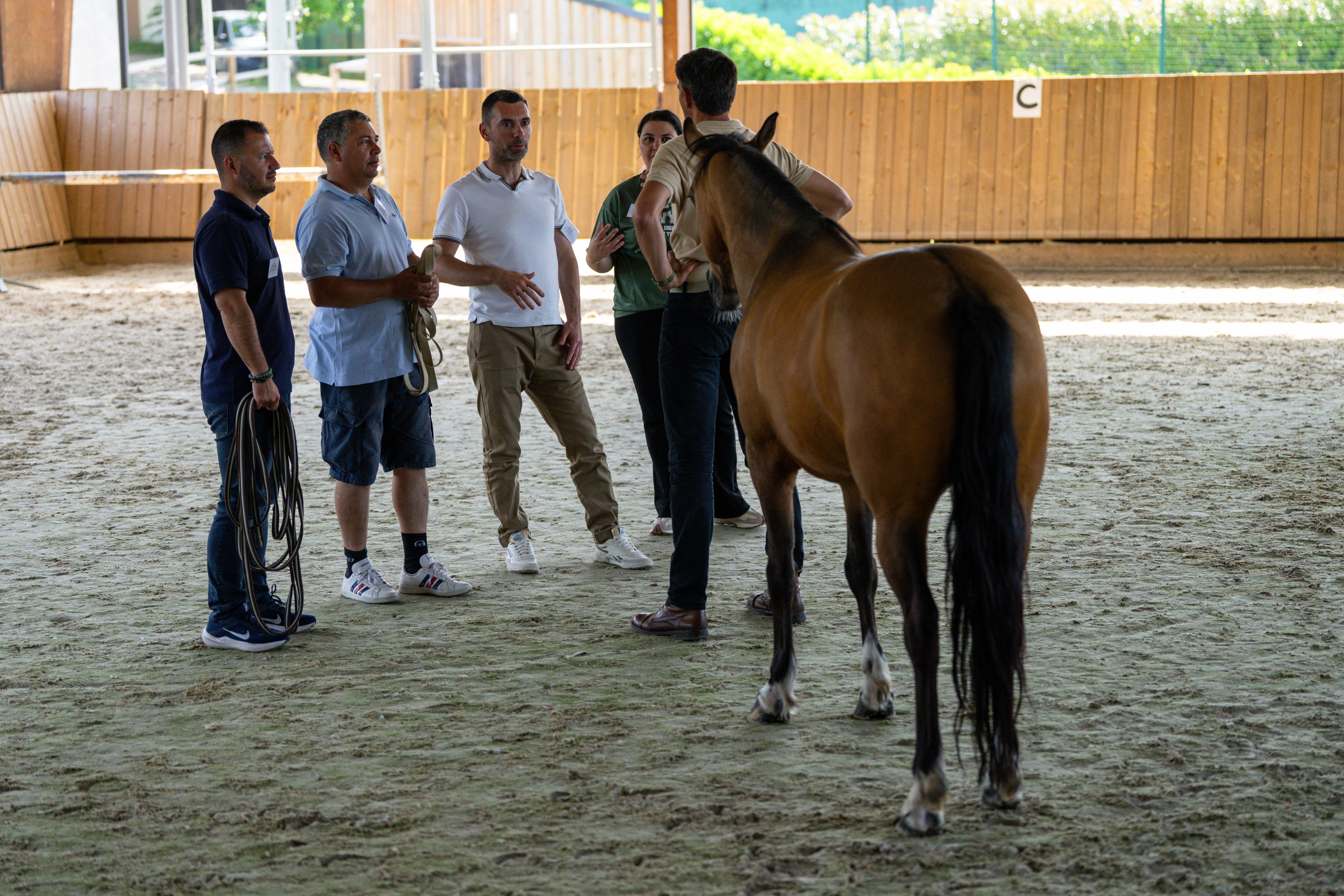 Le cheval ne ment pas : il réagit aux émotions, à la posture, à l’authenticité du leadership avec une précision qu’aucune mise en situation artificielle ne peut reproduire. L’équi-coaching place vos collaborateurs dans des situations de communication non verbale avec un cheval, révélant les dynamiques de groupe, les styles de leadership naturels et les blocages relationnels. Ce que des heures de formation en salle ne parviennent pas à déclencher, une heure avec un cheval peut le faire. Un format premium, puissant et profondément différenciant pour les PME qui veulent travailler en profondeur sur leur culture managériale.